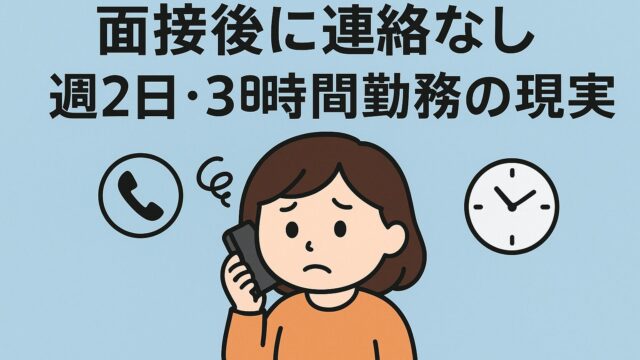 暮らしの工夫 短時間勤務の面接結果|連絡がなかった理由を事例から解説 2025年10月27日 よかてん 発語なし重度自閉症娘と要介護3の母、ダブルケアのリアルな毎日 週に数日、短時間だけ働きたい。家庭の事情で長時間勤務が難しい方にとって、採用の現場はどう映るのでしょうか。 先日、週2日・3時間勤務 …